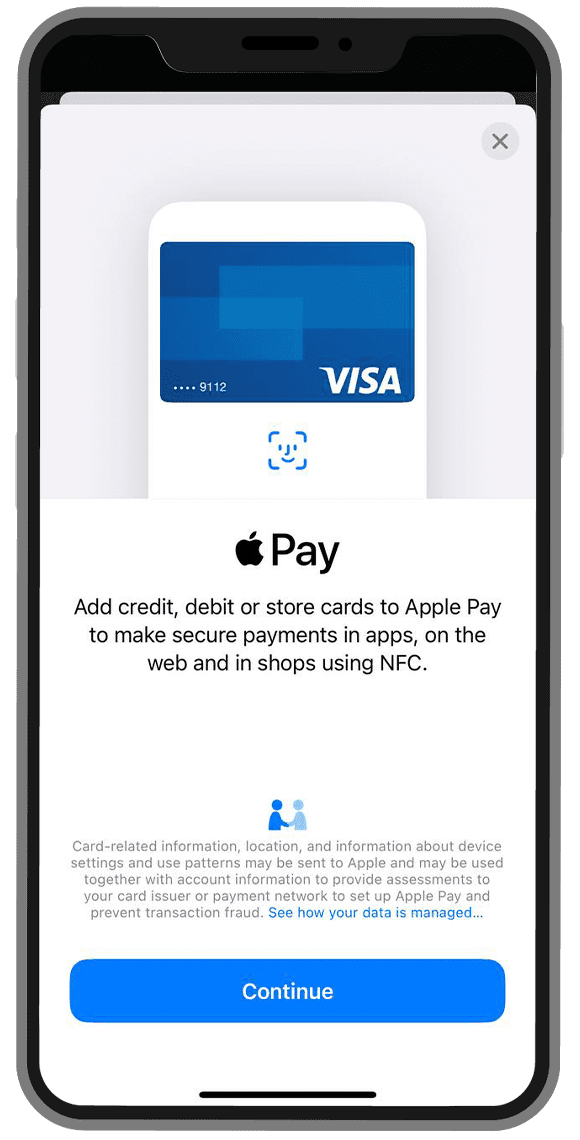 When card details are ready, I double-press the side button and Face ID authenticates.