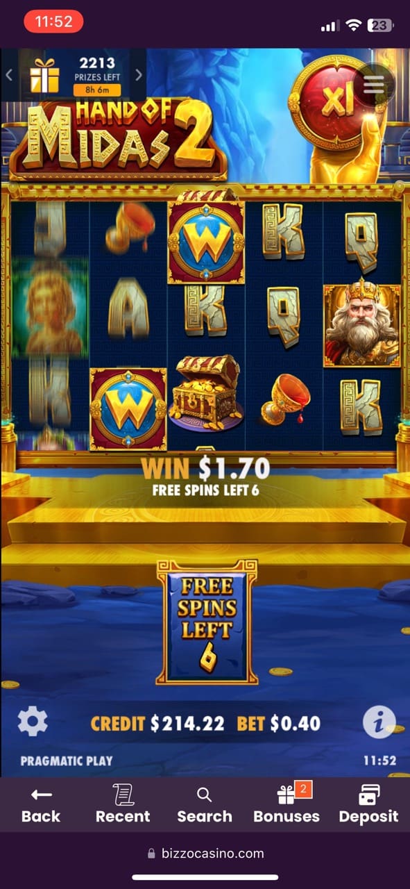 I was stoked with all the game titles I picked: almost each has free spins and bonus rounds. The games I played included Gates of Olympus 1000 where 4 scatters gave 15 free spins with winnings of 2.96 NZD, Moon of Egypt with a bonus game and winnings of 16.40 NZD, Big Bass Bonanza didn’t have free spins but I still managed to win 6 NZD, Book of Dragon Hold and Win, Sizzling eggs where after landing 3 scatters I got 10 free spins and won 6.73 NZD, Samba Da Deuza, Book of diamonds, It’s a Joker with a few free spins, Aztec Clusters, Angel vs Sinner where 3 scatters unlocked 10 free spins and a landed a staggering win of 179.85 NZD. That’s choice! Then I also played Hands of Midas II, where 3 scatters unlocked 11 free spins, and I managed to win 4.98 NZD. Also, I managed to win 18.90 NZD at Wisdom of Athena 1000 and 6.20 NZD at Beast Band.
