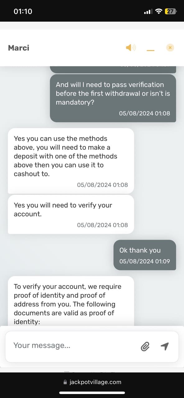 There are no issues when you require assistance at Jackpot Village, as customer support is available around the clock. You are able to make contact with helpful staff members through email or live chat. There is also a convenient help centre which deals with common queries. After reading reviews from other players, I see that Jackpot Village is reliable and fast with queries. Jackpot Village has a good reputation for successfully resolving complaints, which customers have proven.