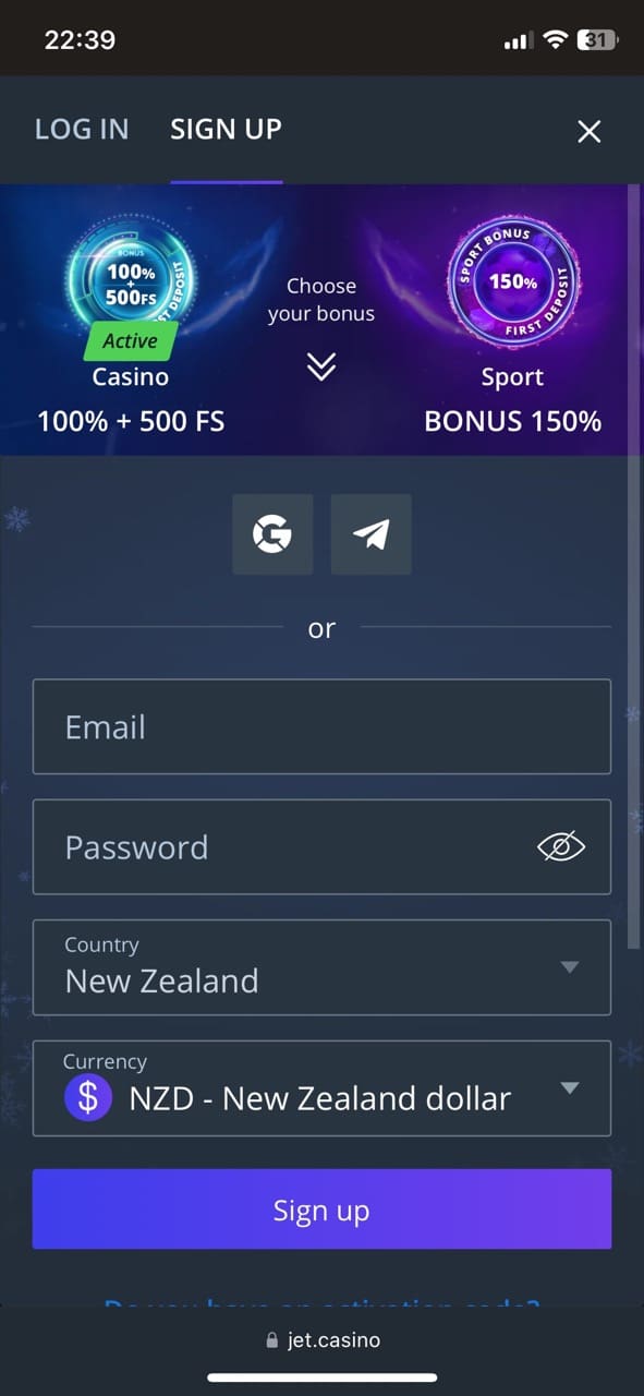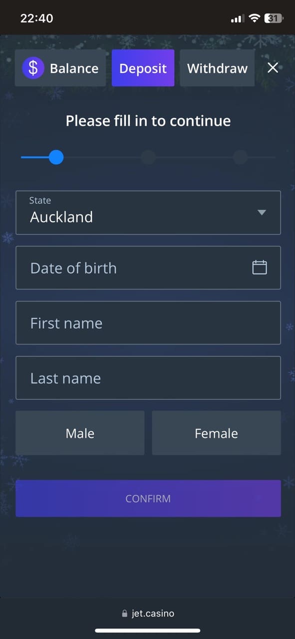 Registration at Jet Online Casino NZ