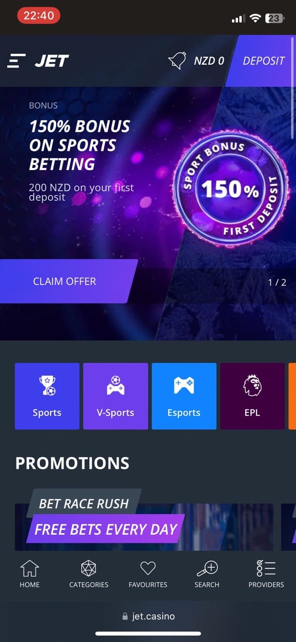 Jet Coins is a so-called VIP program that allows Kiwis to collect points and then exchange them for real cash prizes. Every 75 NZD spent in real money bets will give you 1 coin, while every 75 NZD in bonus bets – 0,5 coin.