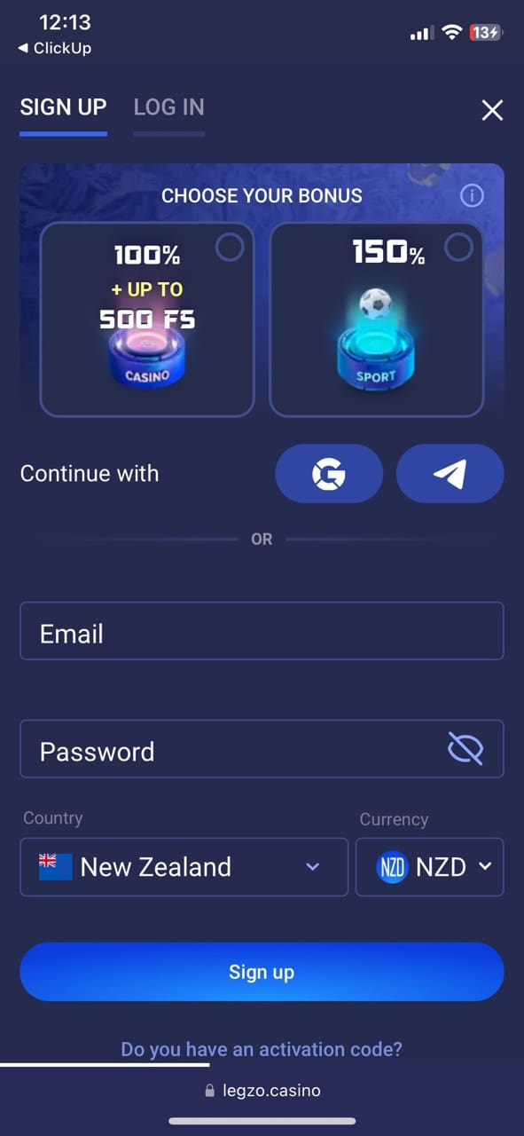 Registration at Legzo Online Casino NZ