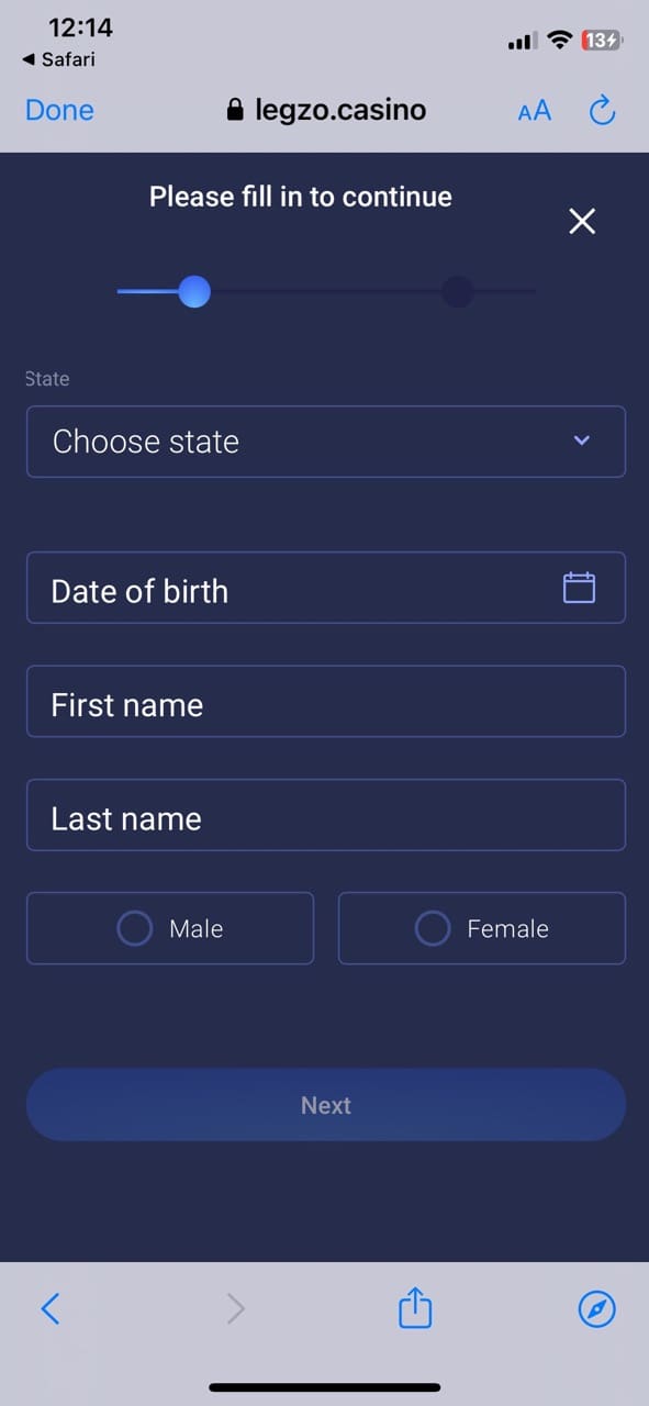 I can’t complain about the registration process at Legzo online casino, as it is pretty standard and takes less than one minute. The details you will have to submit are: