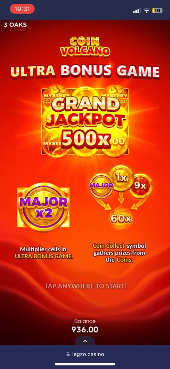 Coin Volcano titles has also brought me good news. I unlocked 3 FS with 40x win and then a bonus game where I instantly got an ultra bonus game, with winnings of 70x my initial bet.