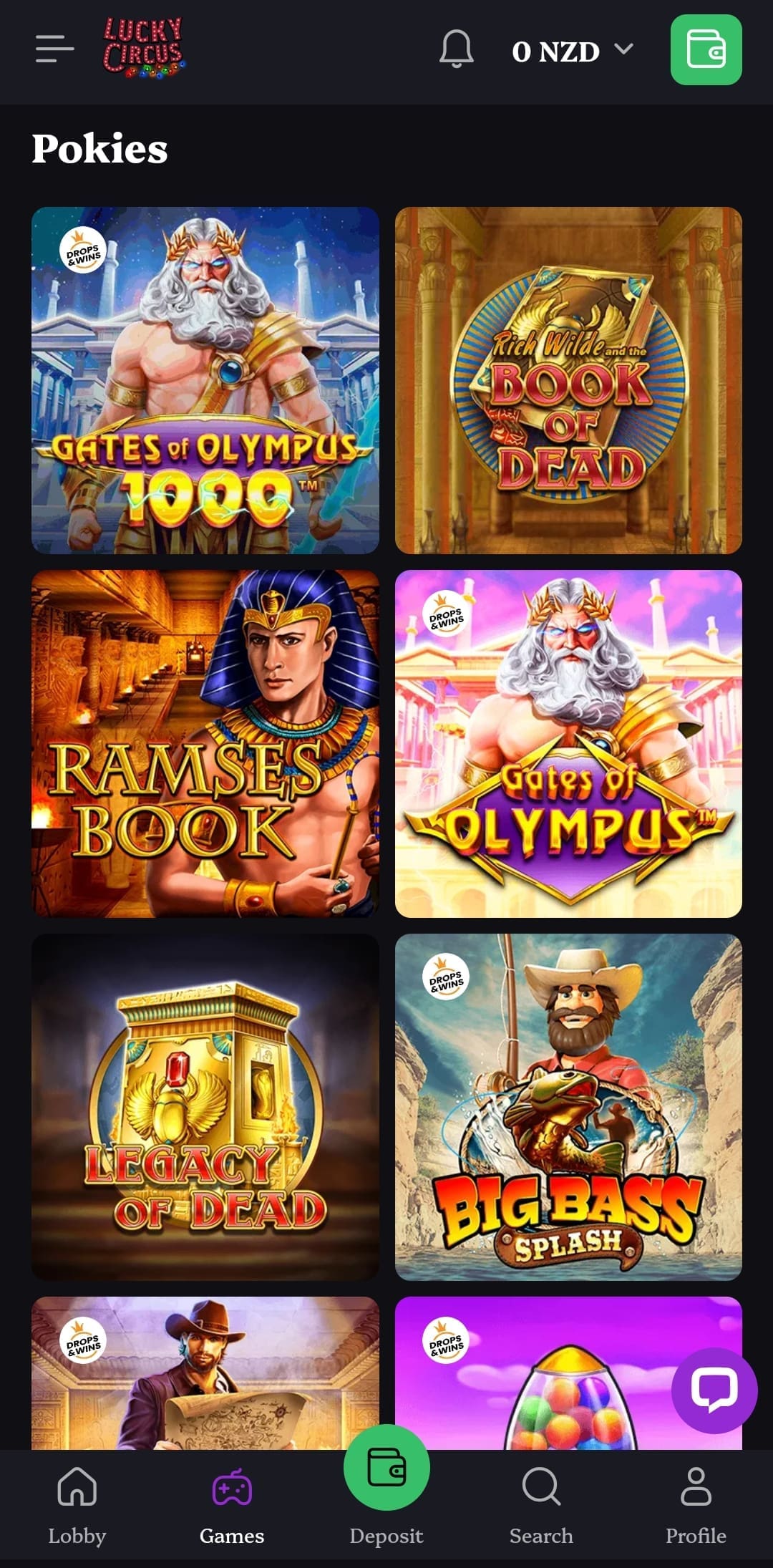 I loved the fact that the top pokies at LuckyCircus are organized in a way that a Kiwi would probably organize them. Our favourite titles are at the top. Plus, they accurately call them Pokies here.