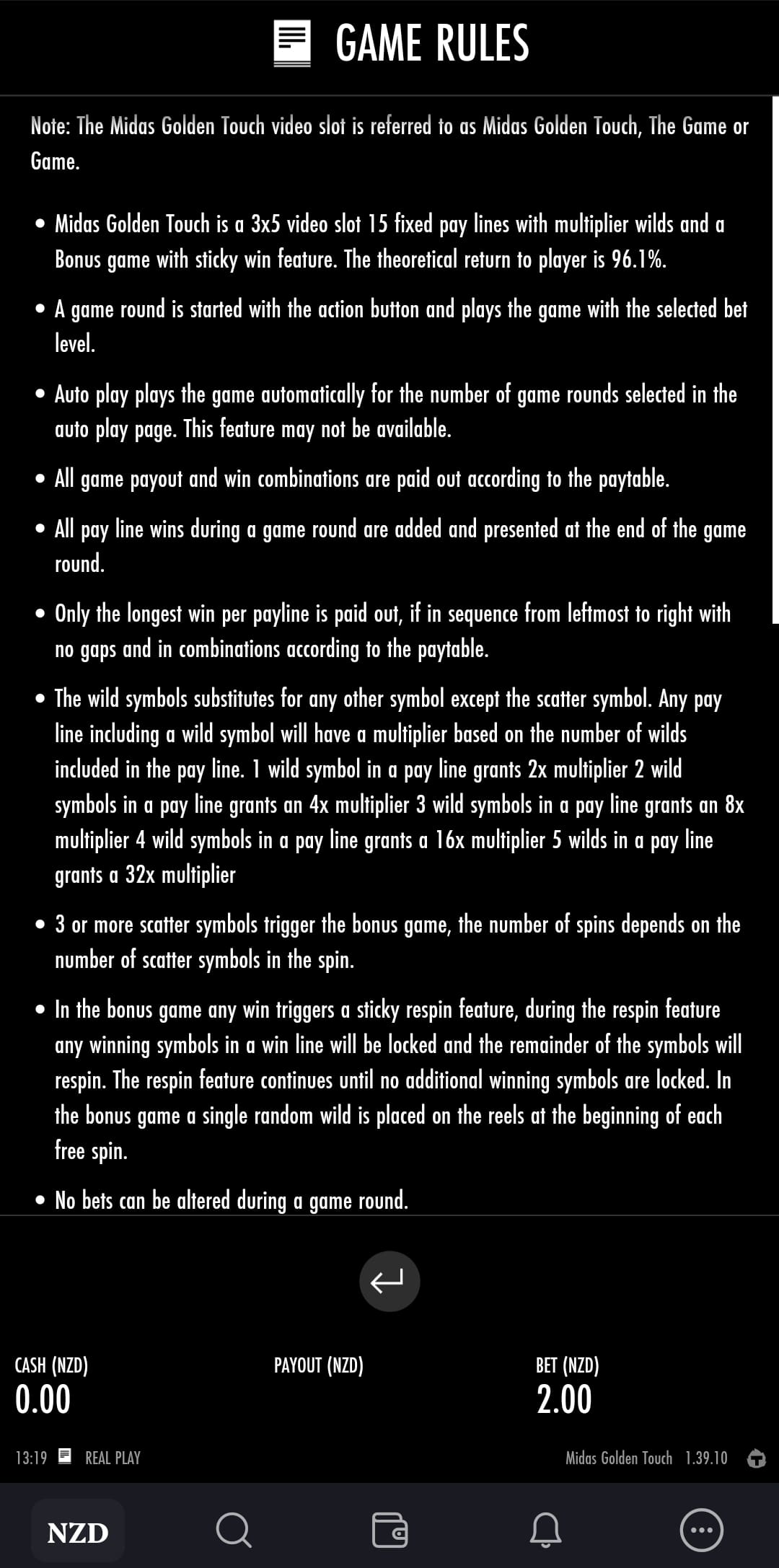Anyway, you rarely see a bonus this generous that doesn’t come with a restrictive set of rules. All good here. 40x playthrough, no maximum win. The 5 NZD maximum bet is the only rule you have to pay attention to.