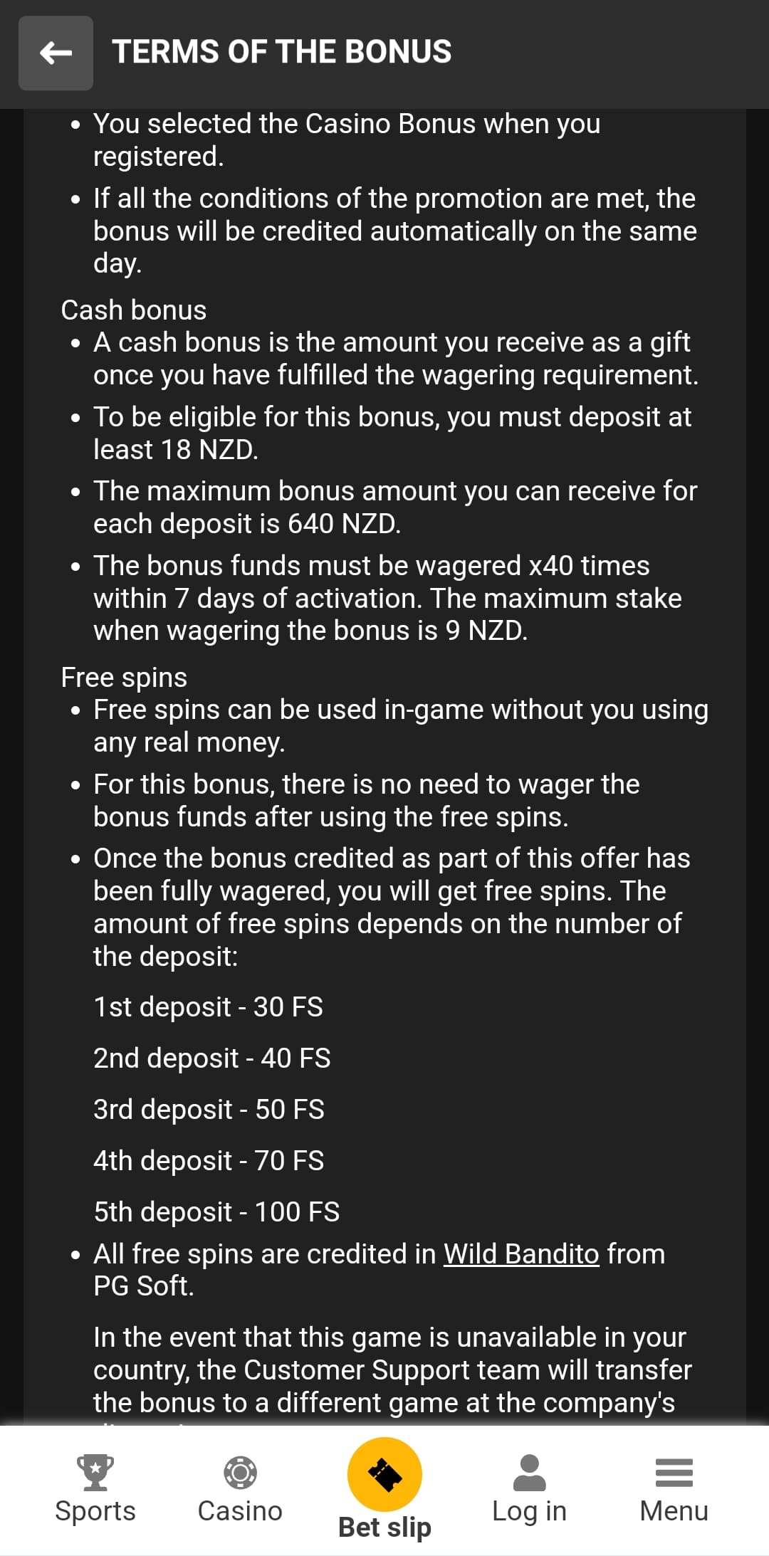 - 200% bonus on your fifth deposit, up to 640 NZD + 100 FS