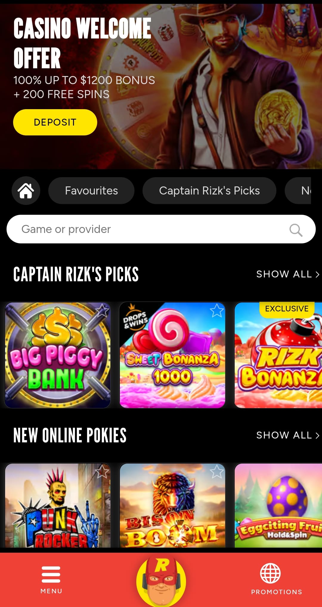 The pokies at Rizk are a mish mash of all the providers that the management decided to onboard, and that can legally be offered in some jurisdiction. That’s how corporate giants do it. The reason why I’m saying this is that, while the offer is excellent, this isn’t your Kiwi-facing casino where you’ll get to see the top 10 or 20 pokies that people in New Zealand play. No. You get Captain Rizk’s Picks, and the picks are fine, but some of the most popular slots in NZ are missing. If that’s what you’re after, our online pokies list shows where to play them in NZ.