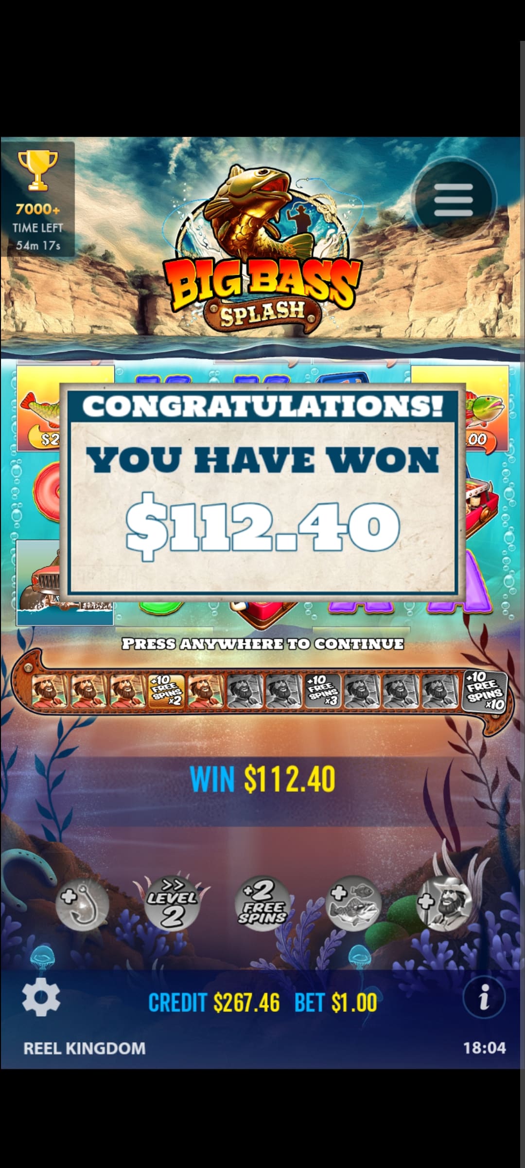 When I lost my entire balance, I got two free spins bonuses on the house, first 20 free spins worth NZ$0.20 each and then 10 free spins worth NZ$0.40 each. I ended up winning around $9, burned through it on Big Bass Splash as I failed to trigger the free spins round. This means I had zero left.