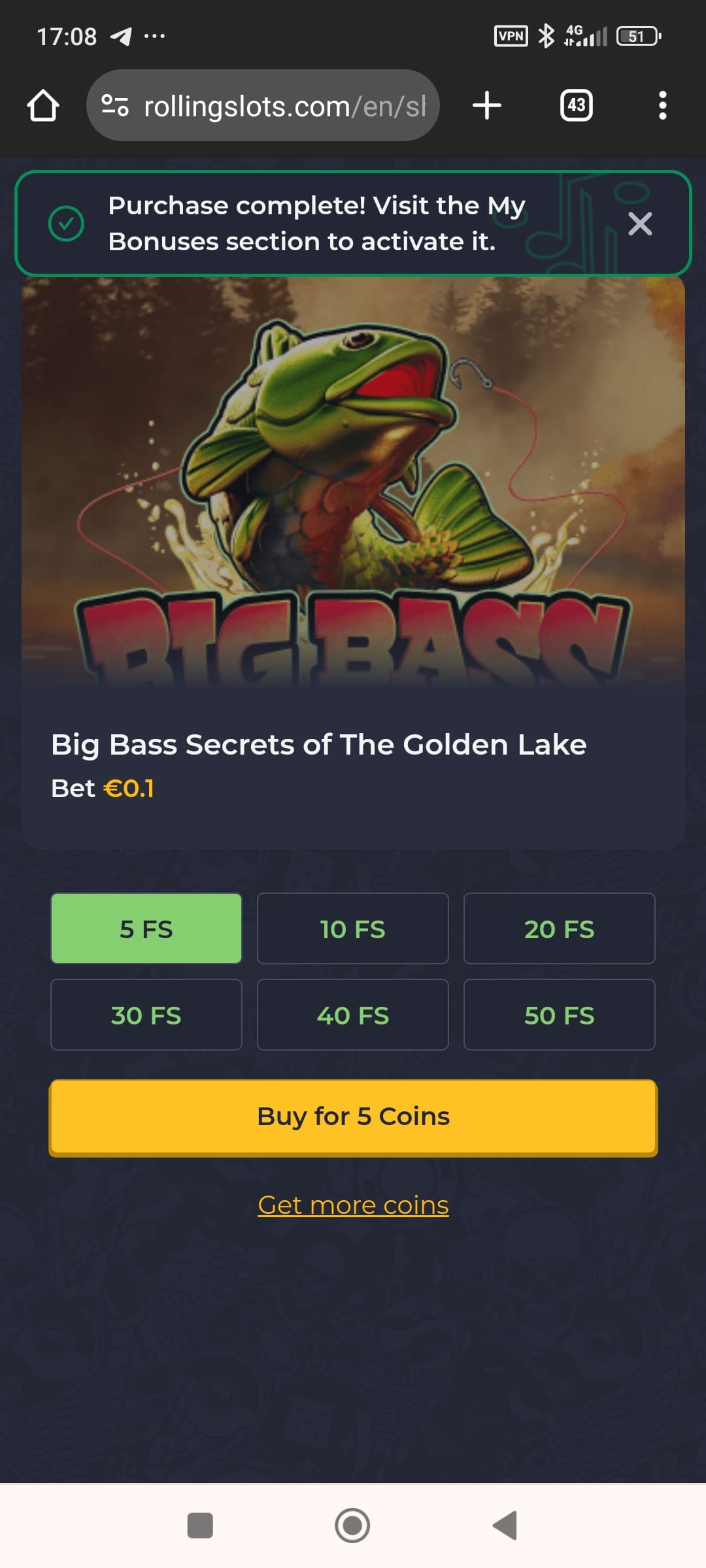 This time I won’t create a dedicated table of RTP tests, I will just say that Pragmatic Play pokies that you play at RollingSlots are configured to low RTP settings. For example, Big Bass Floats My Boat can have up to 96.07% yet RollingSlots set it to 95.06% and they’re predictably doing it for every single Pragmatic Play pokie. Expect them all to pay around 95% at this casino.