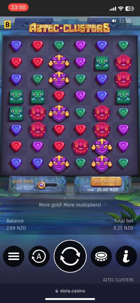 Slota Casino has introduced an absolutely unique feature called Bonus Map. I have reviewed a chocka of casinos in NZ, but I have never seen anything similar. Well, Bonus Map displays random bonuses that appear in little windows stating the size of the bonus and the game you can play with extra cash or spins. When looking through bonuses appearing on your screen, pay attention to dates. Each bonus is subject to a specific day of the month on which you will be able to use the promo.