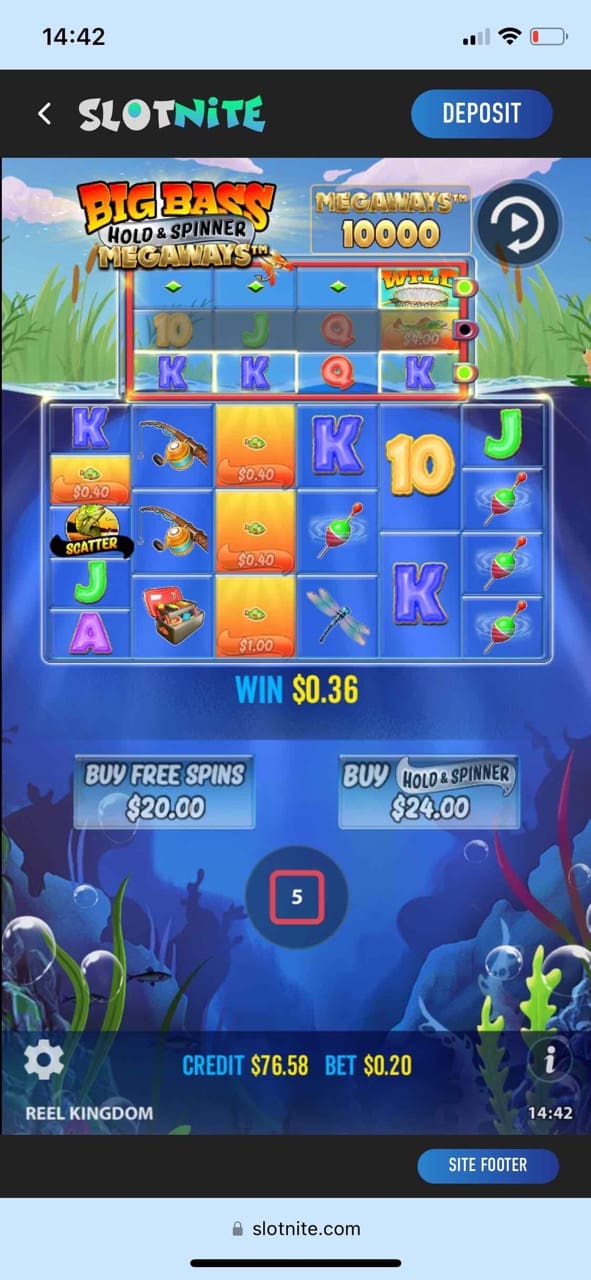 Slotnite has a huge selection of lottery-type games called Slingo. These are a mix of slots and bingo. I tested Money Train and Slingo River Reels. They are quite cool games.