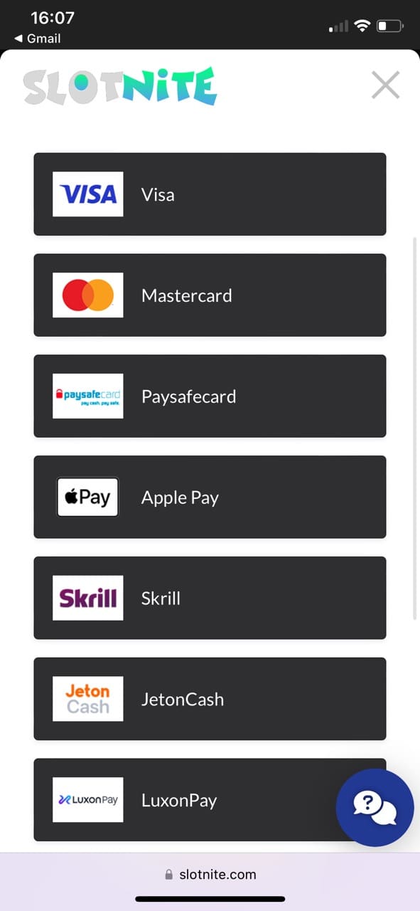 To properly understand the casino and how it works, I started with registration, which is almost identical to other NZ casinos I have reviewed before. Slotnite has quite a lot of payment methods, which is a big pro. The minimum required to receive a welcome bonus was 10 NZD. I funded 20 NZD using Paysafecard. Ideally, I would rather use Skrill. However, the bonus terms state that Skrill and Neteller deposits are not accepted for receiving the bonus.
