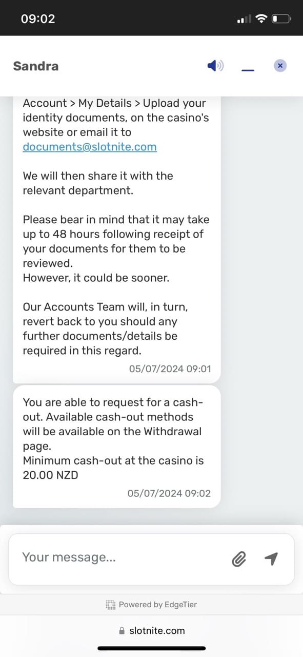 Overall, don’t expect much help from customer support. I had to wait for 10 minutes. My question was about the minimum withdrawal, and they answered that it was 20 NZD. I then checked the terms and conditions, and they stated 10 NZD.