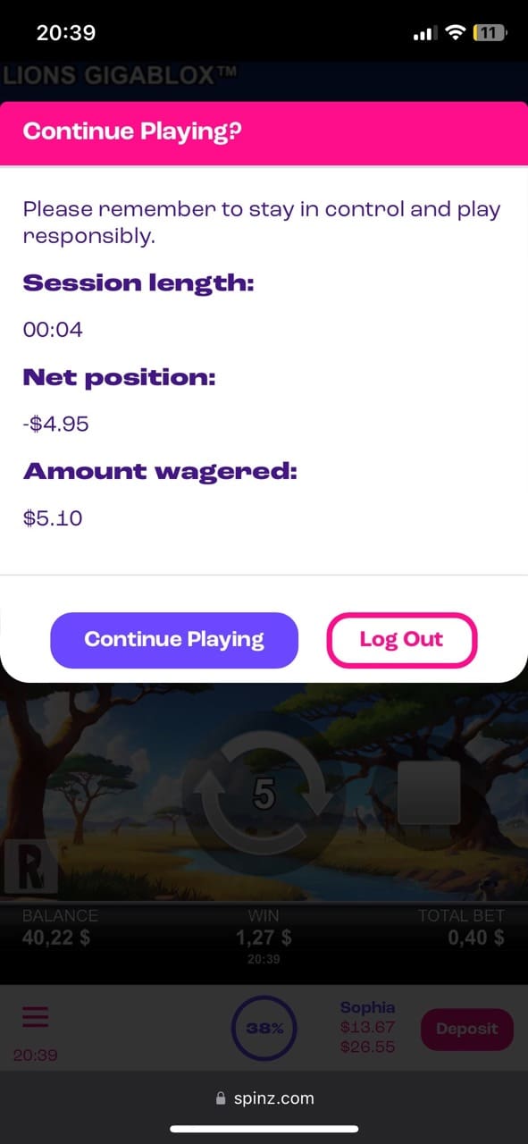 One thing I can’t forget to mention is responsible gambling measures. It seems like Spinz takes care of its members. While playing, I lost quite a bit of money. However, I was constantly receiving notifications about safety and responsible gambling. I actually didn’t opt to receive any notifications. Yet it was smart.